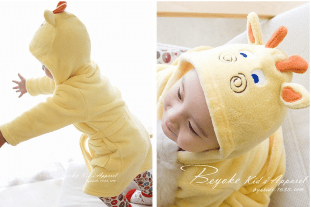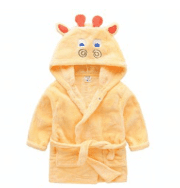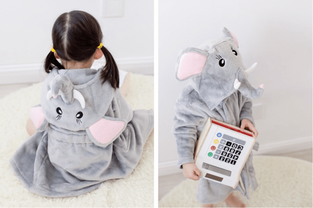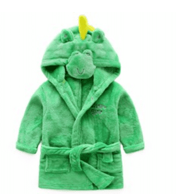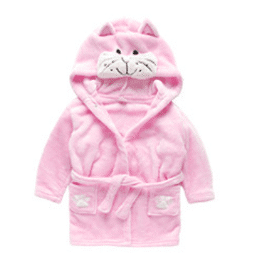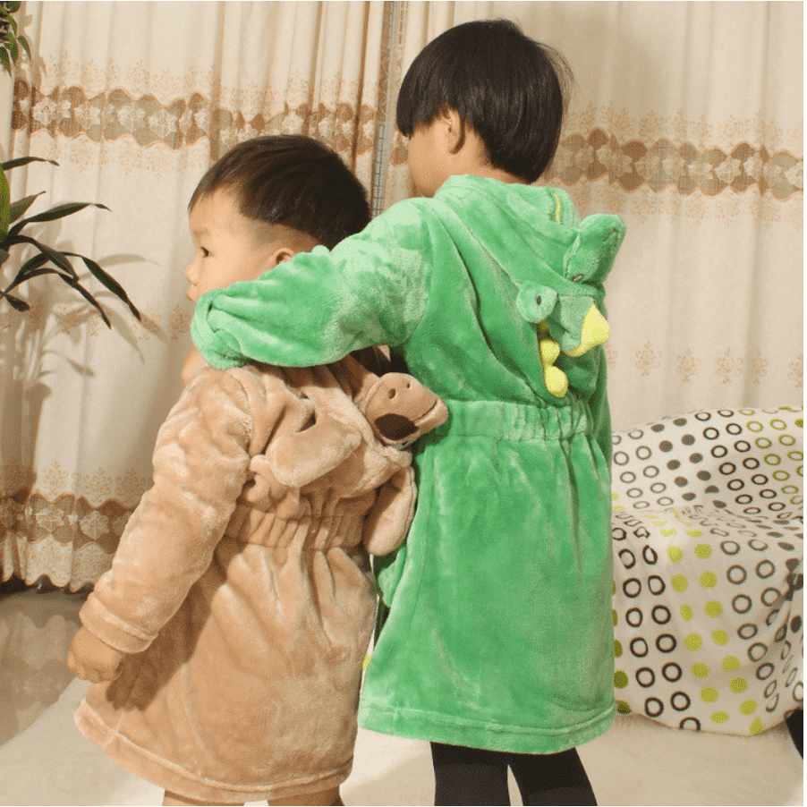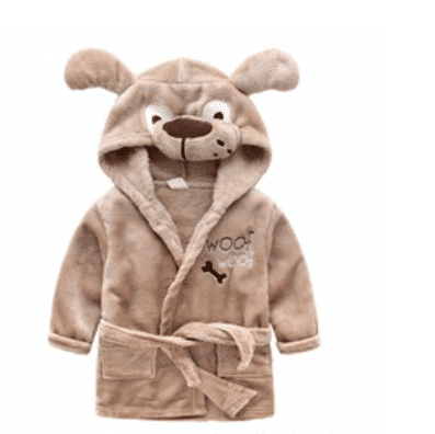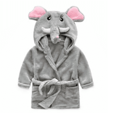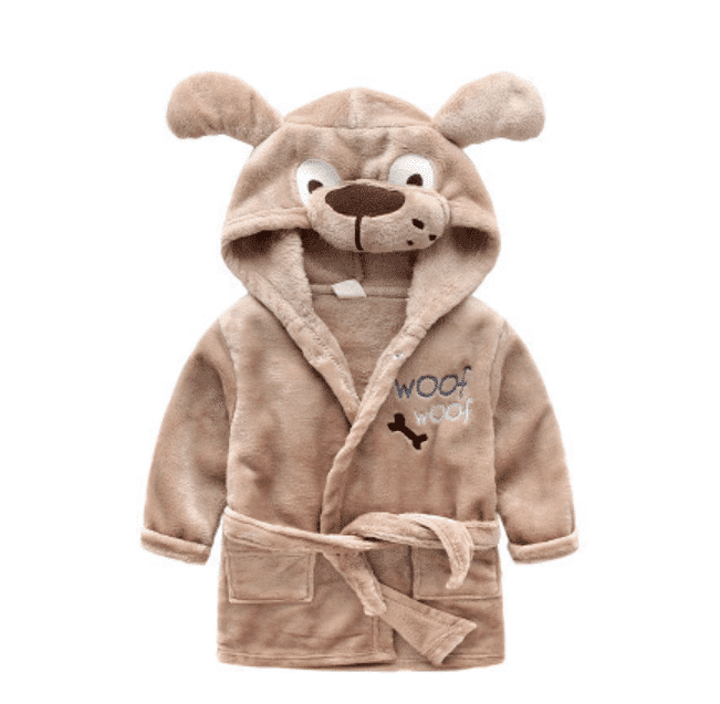 Bade- og morgenkåben kommer i 6 søde designs: bambi, dinosaur, elefant, hund, kat og mus.