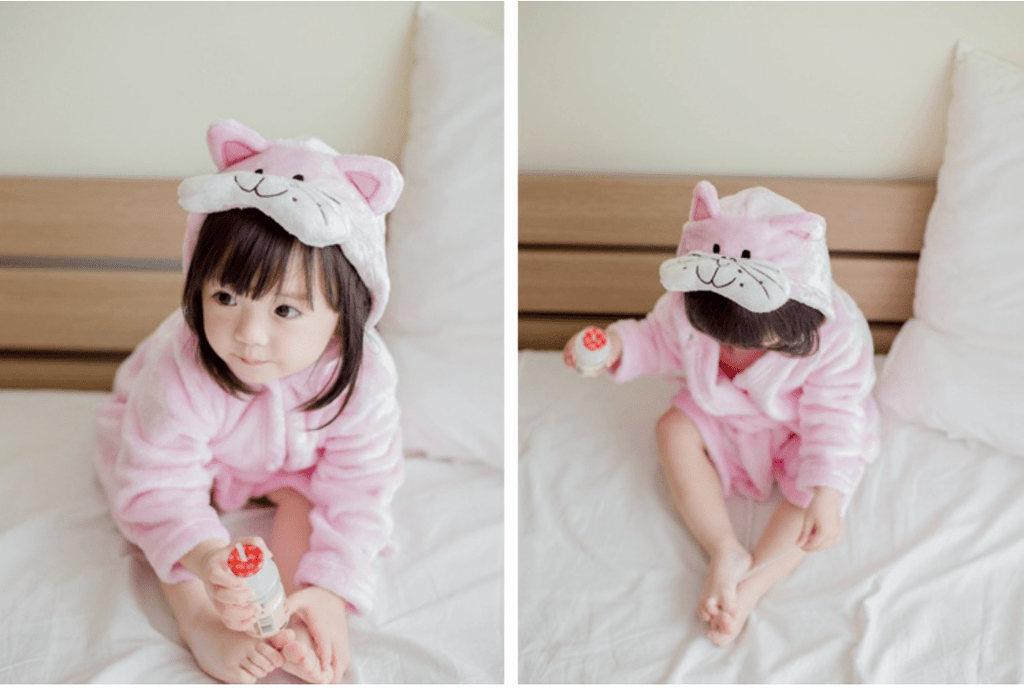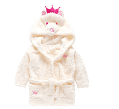 Bade- eller morgenkåbe der er dejlig blød og varm og ikke mindst giver et smil med på vejen. Bade- og morgenkåben er med hætte med påsyede ører og andre søde detaljer, to praktiske lommer foran og lukkes foran med bindebæltet i taljen.
