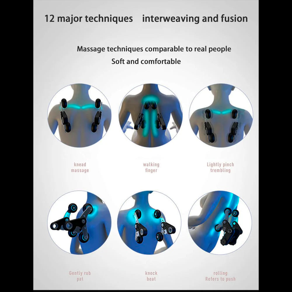 Den præcise 4D-massagemekanisme giver justerbar dybde, bredde og intensitet. Massageteknikker, der kan kombineres: