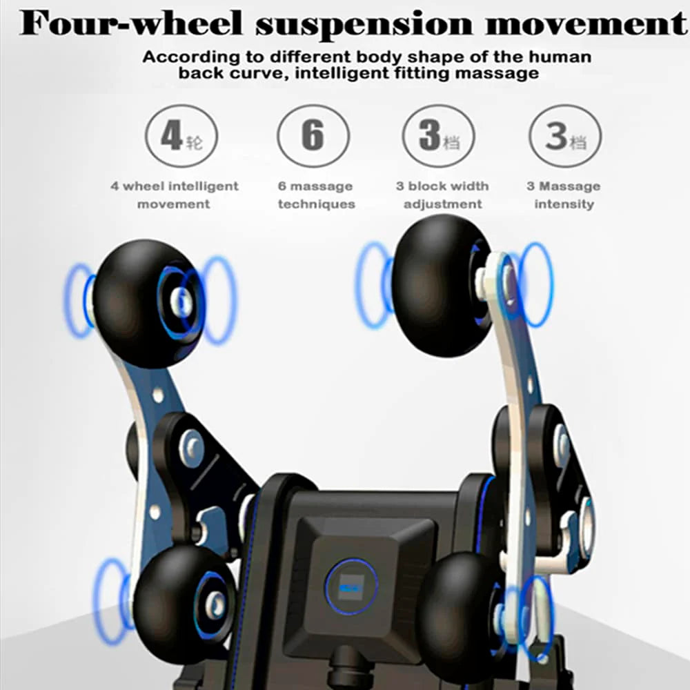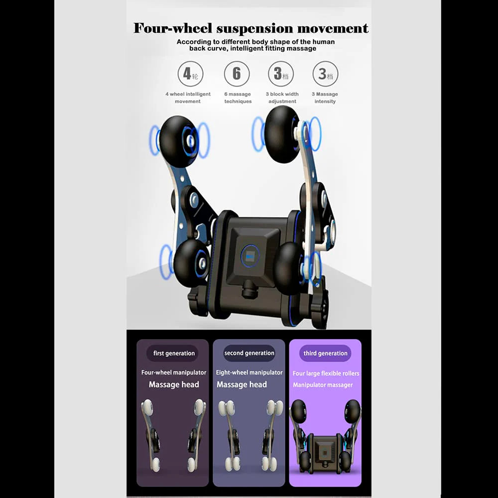 Massage-skinner: • S-track: Fokus på ryg og lænd – kort bane • L-track: Længere bane – ryg + baller • SL-track: Kombination – følger rygsøjlens kurve og fortsætter ned til baller • Faste massagefelter: Kuglerne masserer bestemte zoner uden skinne (fx S9C-modellen)