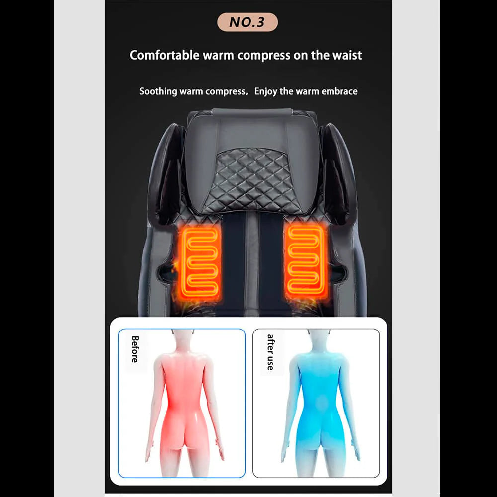 Massagestol 4D med SL-teknologi, lufttryksmassage, Varmeterapi og stor touchskærm - Model A6 Sort