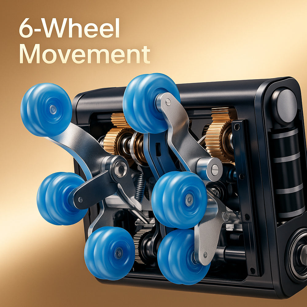 Det avancerede SL-Track kombinerer fordelene ved S- og L-skinner: følger rygsøjlens kurver og fortsætter ned til baller og lår for en ensartet, komplet massage fra nakke til lår.