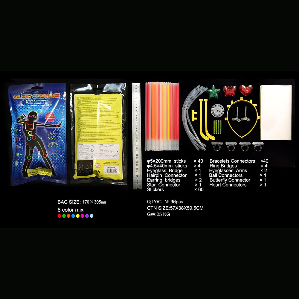 Gør dig klar til at lyse op til enhver fest med dette selvlysende kostume! Perfekt til fester, festivaler, og natteaktiviteter, hvor du vil skille dig ud. Dette sæt inkluderer alt, hvad du behøver for at skabe et unikt, lysende look: