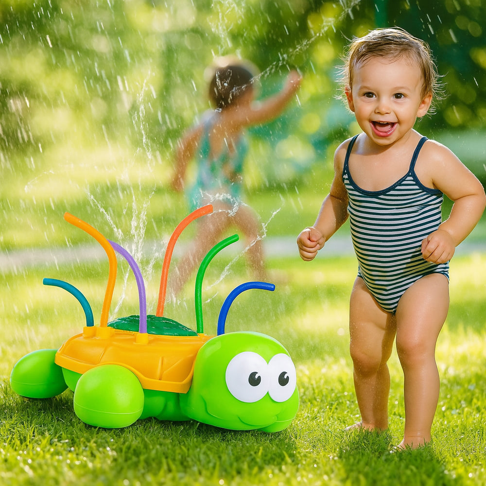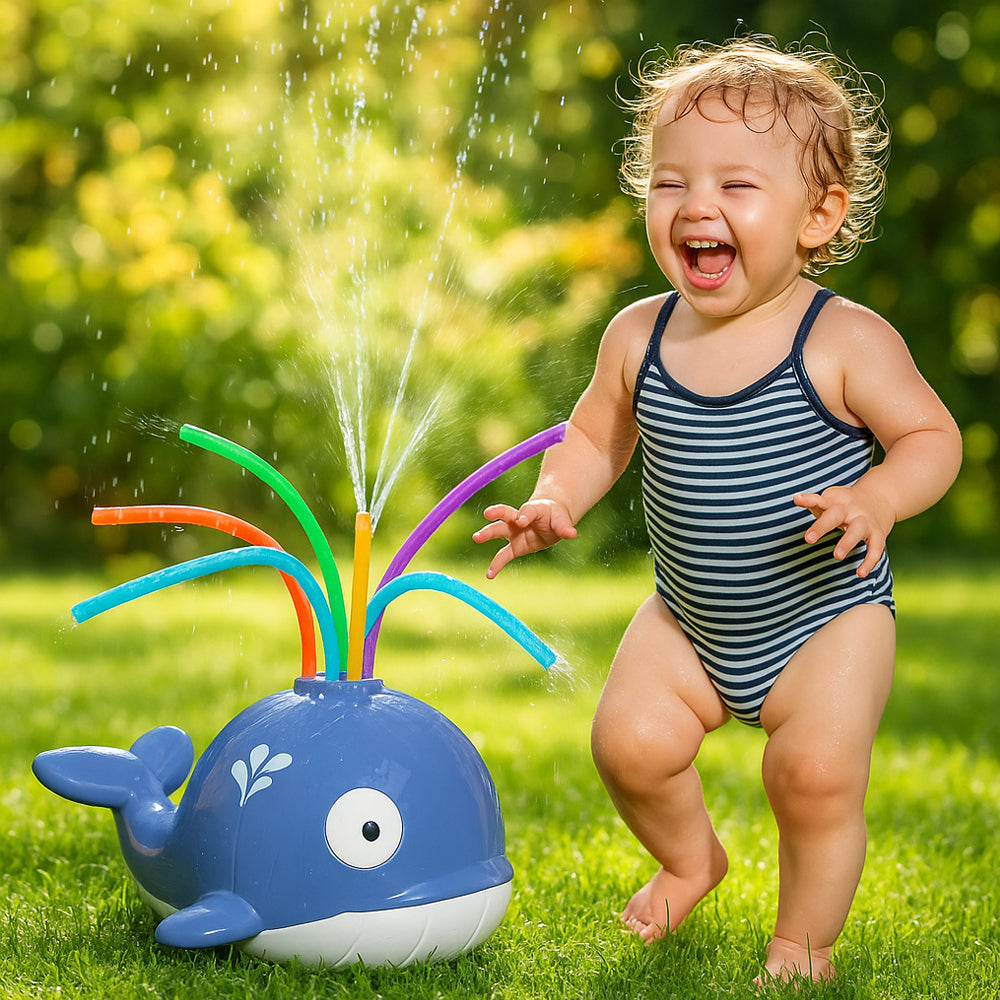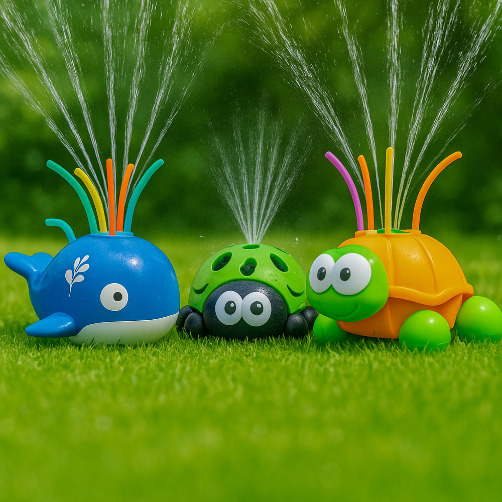Sol, sommer og masser af vandplask i haven - hér har vi sommerens nok skøreste og sjoveste måde at få kølet ungerne ned på, ja selv familiens kæledyr vil ikke kunne modstå fristelsen! Med sine 6 flerfarvede tentakler vil du både opleve en yderst livlig hval og skildpadde hvor vandstrålerne tilfældigt spredes ud i 360º, mens mariehønens syntes at ville ramme alt og alle på én gang med forskellig styrke.